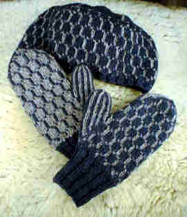 Blue Diamond Double Knit Mittens and Hat Pattern by Anne Bosch