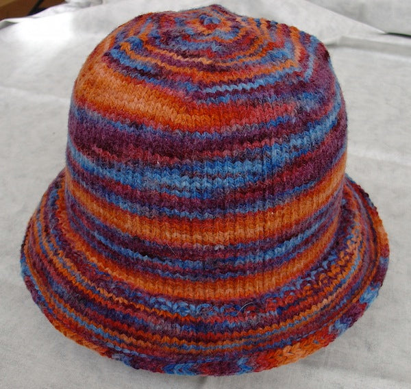The hat is 22" around not including the brim, and comes in two variations, the first (pictured) has ribbing where the brim meets the main body of the hat. The second has a row of eyelets there.